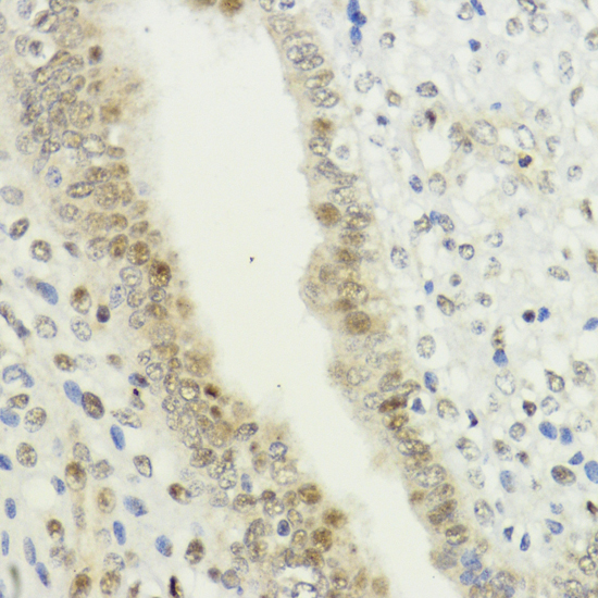 Immunohistochemistry of paraffin-embedded human uterine cancer using LDB1 antibody.
