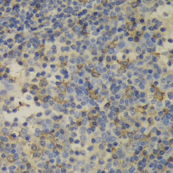 Immunohistochemistry of paraffin-embedded human amygdalitis using FTL antibody.