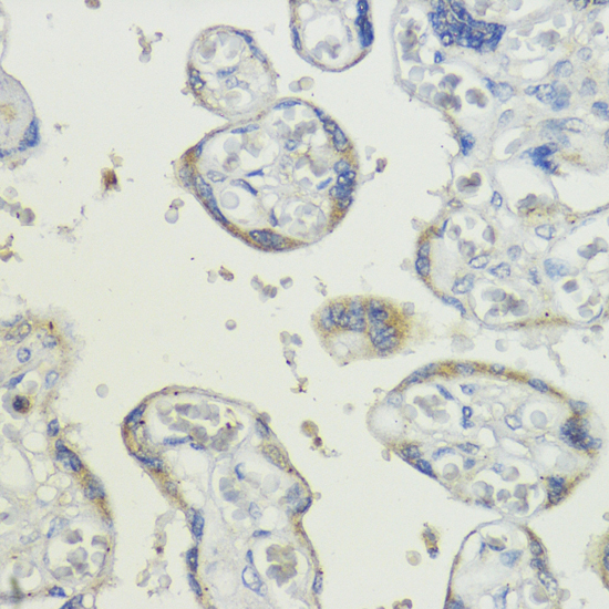 Immunohistochemistry of paraffin-embedded human placenta using BMPR1B antibody.