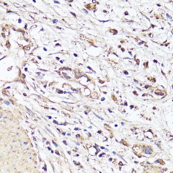 Immunohistochemistry of paraffin-embedded human stomach cancer using VEGFA antibody. |