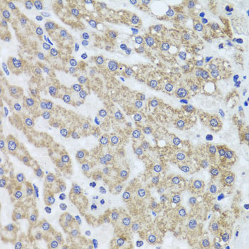 Immunohistochemistry of paraffin-embedded human liver damage using ACP1 antibody. |