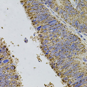 Immunohistochemistry of paraffin-embedded human colon carcinoma using ALDH1A1 antibody. |
