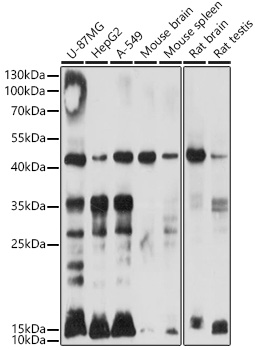 Western blot analysis of extracts of various cell lines, using Ubiquitin antibody. |