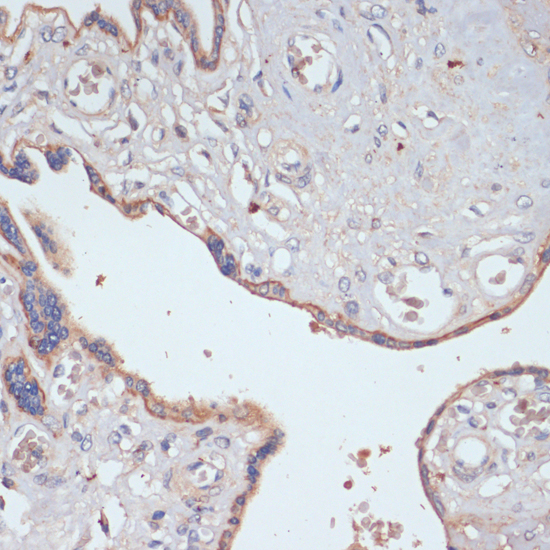 Immunohistochemistry of paraffin-embedded human placenta using CD47 antibody. |