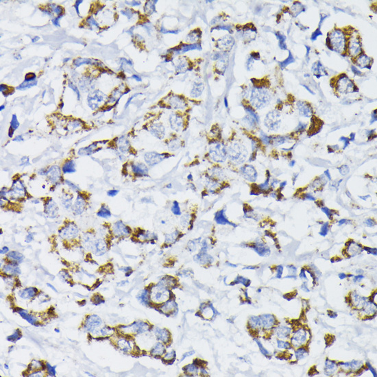 Immunohistochemistry of paraffin-embedded human mammary cancer using PDHA1 antibody. |