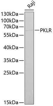 Western blot analysis of extracts of Raji cells, using PKLR antibody.
