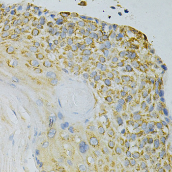 Immunohistochemistry of paraffin-embedded human esophageal cancer using GPX4 Antibody.