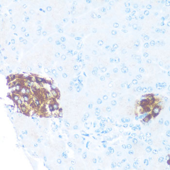 Immunohistochemistry of paraffin-embedded rat islets of langerhans using ODC1 antibody. |