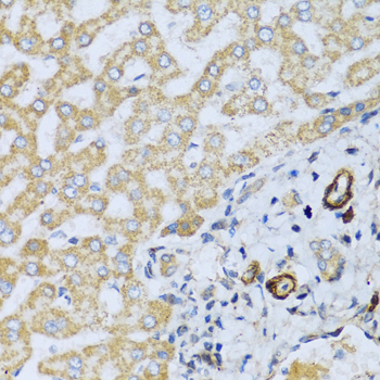 Immunohistochemistry of paraffin-embedded human liver using CSH1 antibody.