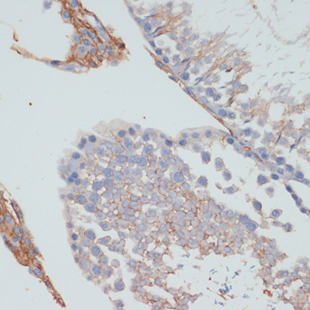 Immunohistochemistry of paraffin-embedded mouse testis using NT5E / CD73 antibody. |