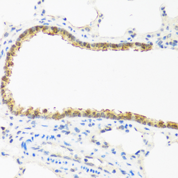 Immunohistochemistry of paraffin-embedded rat lung using CDKN2C antibody.
