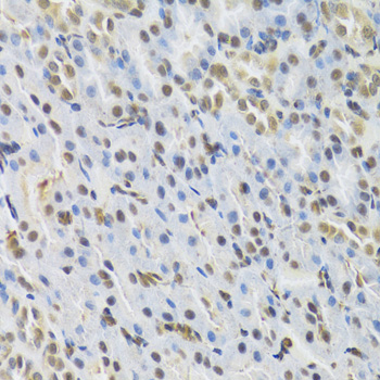 Immunohistochemistry of paraffin-embedded rat kidney using RUNX1 Antibody.