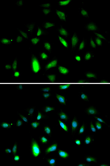 Immunofluorescence analysis of A549 cells using Cyclin B1 antibody. |