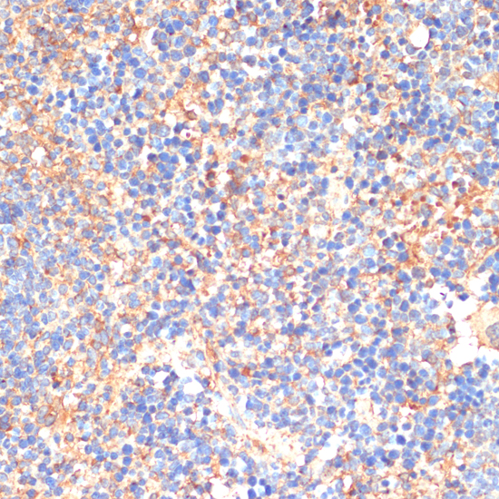 Immunohistochemistry of paraffin-embedded mouse spleen using CD33 antibody.