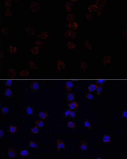 Immunofluorescence analysis of THP-1 cells using CD33 antibody. |