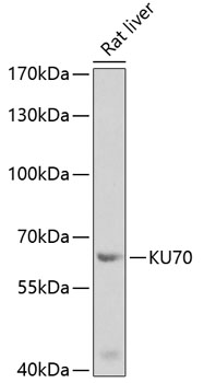Western blot analysis of extracts of rat liver, using KU70 antibody.