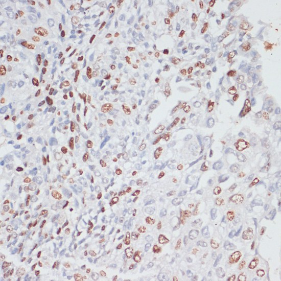 Immunohistochemistry of paraffin-embedded human lung cancer using Ki67 antibody.