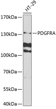 Western blot analysis of extracts of HT-29 cells, using PDGFRA antibody. |