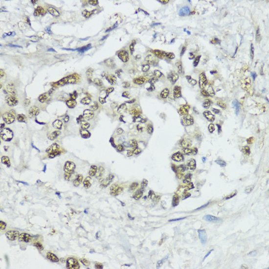 Immunohistochemistry of paraffin-embedded human lung cancer using SUMO1 antibody. |