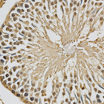 Immunohistochemistry of paraffin-embedded rat testis using XRCC3 antibody.