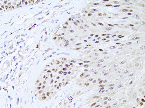 Immunohistochemistry of paraffin-embedded human skin using TP63 antibody.