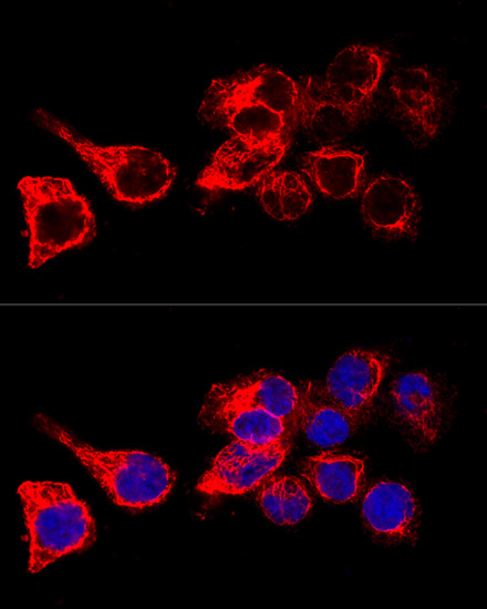 Immunofluorescence analysis of HeLa cells using KRT17 antibody. |
