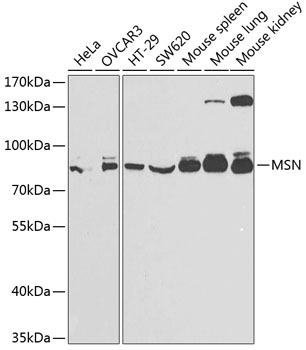 Western blot analysis of extracts of various cell lines, using MSN antibody.