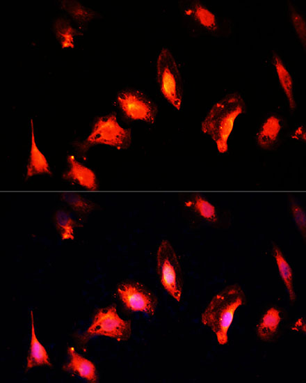 Immunofluorescence analysis of U-2 OS cells using MYST1 Polyclonal Antibody. |