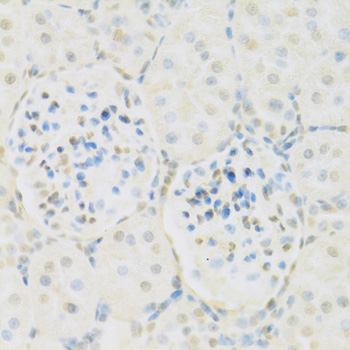 Immunohistochemistry of paraffin-embedded rat kidney using KAT2A antibody. |
