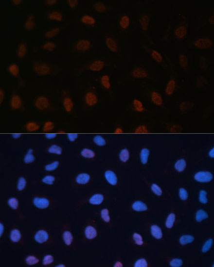 Immunofluorescence analysis of U-2 OS cells using BRD4 Polyclonal Antibody. |