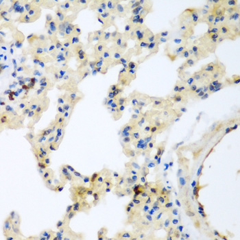 Immunohistochemistry of paraffin-embedded rat lung using LEPREL2 antibody.