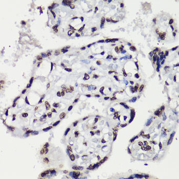 Immunohistochemistry of paraffin-embedded human placenta using Histone H3 antibody.