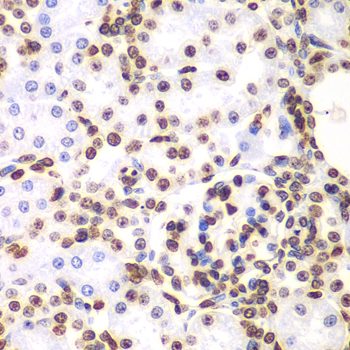 Immunohistochemistry of paraffin-embedded human liver cancer using Histone H3 antibody. |