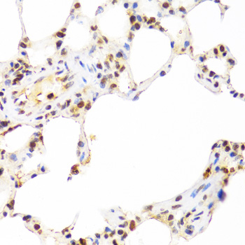 Immunohistochemistry of paraffin-embedded rat lung using SUMO2 Antibody.