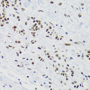 Immunohistochemistry of paraffin-embedded human breast cancer using SUMO2 Antibody. |