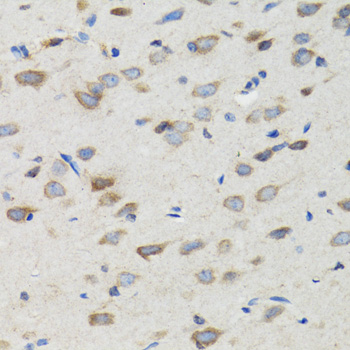 Immunohistochemistry of paraffin-embedded rat brain using SIAH1 antibody.