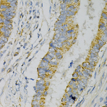 Immunohistochemistry of paraffin-embedded human colon carcinoma using GNAO1 Antibody.