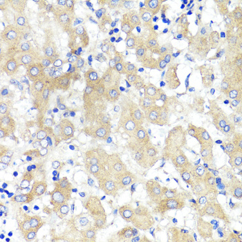 Immunohistochemistry of paraffin-embedded human liver cancer using AXIN2 antibody.