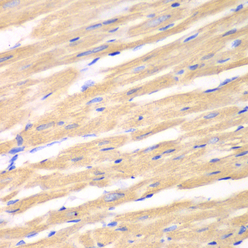 Immunohistochemistry of paraffin-embedded rat heart using DKK3 antibody.