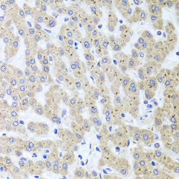 Immunohistochemistry of paraffin-embedded human liver damage using ADIPOQ Antibody. |