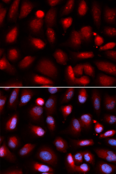 Immunofluorescence analysis of U2OS cells using NF-kB p65 antibody. |