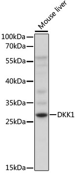 Western blot analysis of extracts of mouse liver, using DKK1 antibody. |