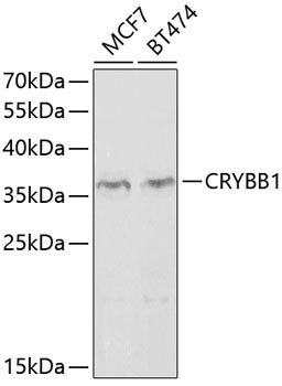 Western blot analysis of extracts of various cell lines, using CRYBB1 antibody. |