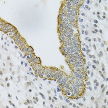 Immunohistochemistry of paraffin-embedded human uterine cancer using KRT5 Antibody. |