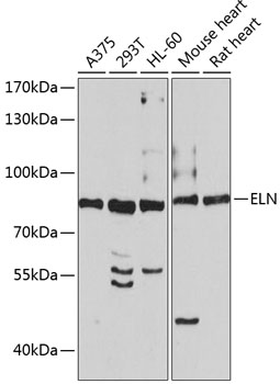 Western blot analysis of extracts of various cell lines, using ELN antibody. |