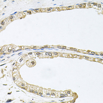 Immunohistochemistry of paraffin-embedded human prostate using CDK1 antibody.
