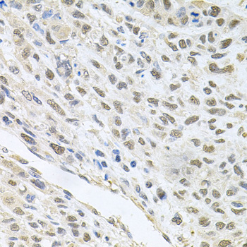 Immunohistochemistry of paraffin-embedded human lung cancer using CDK1 antibody. |