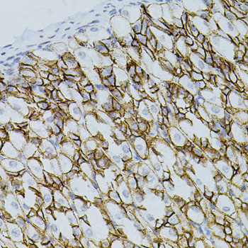 Immunohistochemistry of paraffin-embedded mouse stomach using CLDN3 antibody.