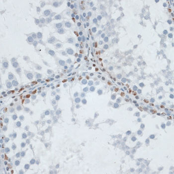 Immunohistochemistry of paraffin-embedded rat testis using HDAC7 antibody.