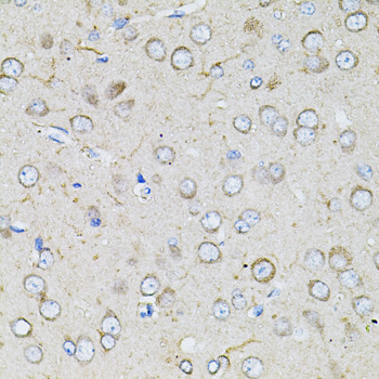 Immunohistochemistry of paraffin-embedded rat brain using BEST1 antibody.